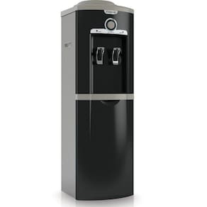Características: Tipo de bebedouro: Coluna Níveis de temperatura: Termostato frontal para ajuste de temperatura entre 5° à 15ºC Tipo de água: Natural e gelada Capacidade: Reservatório água gelada 1,8 litros Suporta galões de até: Garrafão 20 litros Altura máxima dos copos: 17,5 cm Torneiras: Fluxo continuo e controlado Bandeja de água: Sim removível Indicador luminoso: Não Alças laterais: sim Silencioso: Sim Gás refrigerante ecológico: Gás R134a, não agride a camada de ozônio Potência: 97 Watts Consumo aproximado de energia: 14,4 kWh/mês Material: gabinete com peças frontais em plástico injetado e laterais de aço Easy open: Permite abertura automática do garrafão Alças laterais: Permite o transporte e deslocamento para limpeza Sistema eletrônico de refrigeração: Não por compressor, maior capacidade de refrigeração e menor consumo de energia. Água gelada até nos dias mais quentes Aprovada pelo INMETRO: Sim