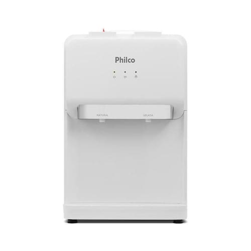 Bebedouro de mesa elétrico Philco PBE11, capacidade para garrafão de 10L ou 20L, sistema de resfriamento por compressor, fornece água gelada e natural, com bandeja coletora removível e sistema perfurador de garrafão.Água gelada