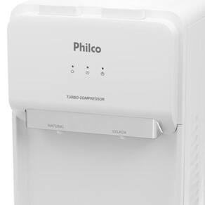Bebedouro de mesa com água natural e gelada. Sistema de refrigeração por compressor. Bandeja coletora removível. Perfurador de lacre do garrafão. Luz indicadora de funcionamento. Não contém CFC. Gás refrigerante R 600.Água gelada