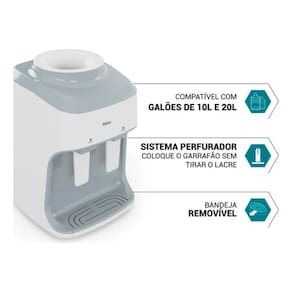 Bebedouro Philco PBE15B com refrigeração eletrônica, compatível com galões de 10 e 20 litros, sistema perfurador, duas torneiras (água natural e gelada), baixo consumo de energia.Água gelada