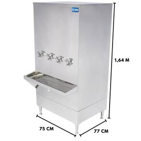 Resfriador com revestimento em aço inox, ajuste manual de temperatura e com bóia para controlar o nivel de água. Acompanha 4 torneiras para melhor distribuição de água, baixo consumo de energia.