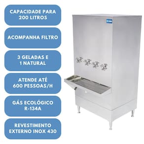 Quantidade de torneiras: 4 torneiras (3 gelada e 1 natural)