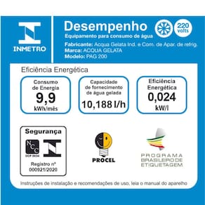 Bebedouro de modelo pressão PAG100, está disponível na opção: Aço Inox 430 brilhante. Acompanha 03 torneiras de pressão em latão cromado, sendo-as 01 para copo e 02 para boca. Seu sistema funcional é composto por: • Reservatório interno em aço inox 304; • Unidade condensadora EMBRACO de 1/6HP, sendo opcionais as tensões 127v e 220v; • Isolação térmica em EPS1, retendo a temperatura; • Termostato interno com regulagem fixa de 4° a 11°C e tomada de 03 pinos; • Serpentina interna em aço inox 304; • Gás refrigerante R134A, ecologicamente correto; • Suas dimensões são: Altura: 90 cm Frente: 80 cm Lateral: 35 cm • Peso aproximadamente: 45 kg - Armazena: 6 l