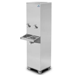 Bebedouro Industrial Coluna 25 Litros RA025C Frisbel. Ideal para escritórios, escolas, hospitais, ambientes industriais com grande produção e similares. Uma solução robusta e eficiente para fornecer água gelada e natural. Acabamento em inox 430. Gás R134A ecológico. ATENÇÃO: Deve ser conectado a uma caixa d'água com altura máxima de 3 metros. QUANTIDADE DE TORNEIRAS: 2. CAPACIDADE: 25 Litros. CAPACIDADE DE REFRIGERAÇÃO: 3,6 l/h gelado(10°C). CONSUMO MENSAL: 18kwh. PESO: 24,5kg. DIMENSÕES(CxAxL): 45x130x34cm. Bebedouro Industrial Coluna 25 Litros RA025C Frisbel é na Atau.