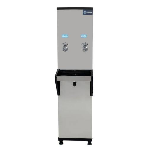 A serpentina interna em aço inox 304 e o reservatório em polipropileno atóxico garantem água limpa e segura, enquanto o isolamento em EPS e o gás ecológico R134a proporcionam refrigeração eficiente. O termostato com 7 níveis permite ajustar a temperatura conforme a necessidade, e a bóia controladora mantém o nível ideal de água. Equipado com duas saídas de água gelada e natural o bebedouro atende até 60 pessoas por hora, considerando consumo médio de 200 ml por pessoa.
