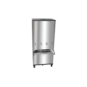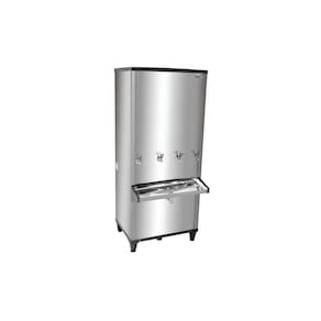Bebedouro industrial de coluna com capacidade de 200 litros, estrutura em inox, gás ecológico R134A e quatro torneiras.Água gelada