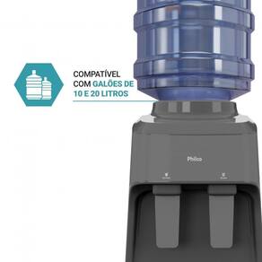 Não espere mais para ter o conforto e a qualidade que você merece. Adquira o Bebedouro de Mesa Philco PBE15C e transforme sua rotina de hidratação. água fresca, pura e na temperatura ideal a qualquer hora do diaEspecificações: Potência: 70WConsumo: 0,7 KWH.Acionamento: TorneiraÁgua natural e geladaQuantidade de Torneira: 2Com bandeja coletora de água removível: SimÁgua natural: SimÁgua gelada: SimComporta Garrafões de 10L e 20L não acompanha garrafão Sistema perfurador de garrafão: SimSistema de resfriamento por: Sistema eletrônico de refrigeraçãoTomada A 10ACor: cinza escuro.