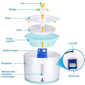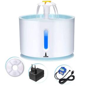 Com uma grande capacidade de 2,4 Litros, o Bebedouro para Gatos e Cães Lorben pode fornecer água fresquinha e purificada para seu pet por um longo período, sem necessidade de reabastecer com frequência. Mesmo que você saia por um dia inteiro, não precisa se preocupar com seus animais de estimação não recebendo bebida fresca suficiente.Fabricada em resina PP, material não tóxico, inodoro e durável. O Bebedouro possui partes desmontáveis, que facilitam a limpeza. Acompanha cabo USB e adaptador de carregador, sendo possível conectar a fonte de alimentação em qualquer lugar com acesso de energia.Seu sistema de purificação utiliza filtro de carvão com 3 camadas, substituível, que pode filtrar efetivamente pelos, odores, pequenos sedimentos na água e cloro. Consequentemente, o Bebedouro pode fornecer água mais limpa aos animais de estimação e reduzir o risco de desenvolver doenças. O nível de água pode ser acompanhado por uma janela no recipiente e conta ainda com iluminação LED, que torna mais fácil para os animais beberem água à noite.O Bebedouro tem 3 configurações diferentes de fluxo de água, que estimulam os pets a consumir mais água, trazendo mais saúde e vitalidade para seu amigo peludo.Com bomba de água submersível super silenciosa, você mal consegue ouvir o som do fluxo de água, o que não afeta seu descanso nem o de seu animal de estimação. - Grande capacidade volumétrica- Baixo consumo de energia- Fácil manutenção- Filtro de carvão com 3 camadas- Com luz LED- 3 configurações diferentes de fluxo de água- Bomba submersa de nova geração, muito silenciosa- Indicado para gatos, cães de médio/pequeno porte e pássarosMarca: LorbenCor: Branco/AzulMaterial: Resina PPCapacidade: 2,4 LitrosVoltagem: Bivolt 100V ~ 240V ACAdaptador de carregador: DC 5V 1000mAPotência: 1,5WTipo de animal recomendado: Gatos e cães médios/pequenos e pássarosAmbiente de utilização: Indoor (Interno)Importante: Limpe a bomba a cada 2 semanas para prolongar a durabilidade do produto e troque o filtro a cada 2 ou 4 semanas, dependendo da quantidade de pets que utilizam o bebedouro. Isso ajuda a manter a saúde dos animais de estimação.Utilize o bebedouro sobre superfícies planas, em ambientes fechados. Inclui:1 Bebedouro fonte1 Filtro de carvão1 Cabo USB1 Adaptador de carregadorTamanho do produto: 13,1x18,6x18,6cm (AxLxP)Peso do produto: 516gTamanho da embalagem: 50x40x15cmPeso da embalagem: 670gCódigo do produto: GT6106Imagens ilustrativas. As tonalidades podem variar.