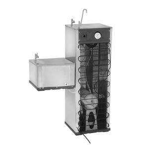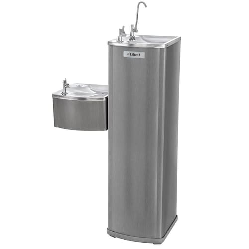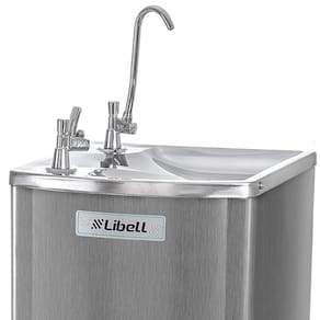 Gabinete sem emendas | Pia em aço inox polido | Torneiras para copo e jato cromadas | Conexões hidráulicas internas em material atóxico | Reservatório para água gelada em poliacetal atóxico | Serpentina em aço inox | Controlador de temperatura entre 4 e 15ºC | Sistema interno de filtração com 3 etapasÁgua gelada