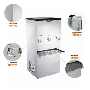 Bebedouro Refrigerado Inox de Coluna 100l 3 Torneiras Geladas Bi100l 220v - Venâncio 50688