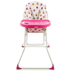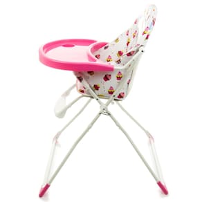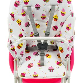 Com estampa de Cupcake, essa cadeira para refeição da Cosco possui um assento acolchoado removível, que é muito simples de limpar, e uma bandeja com porta-copos, também removível. Destaque para o fechamento compacto no estilo sanfona, que facilita o armazenamento pós uso.