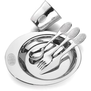 Detalhes do Jogo para Criança Catty Inox 5 pçs O Jogo para Criança Catty possui peças elaboradas em aço inoxidável, altamente duráveis, que mantém as características originais, além disso, proporciona maior higiene. Ele é fabricado com acabamento em alto brilho e possui desenhos estampados em baixo relevo. O jogo é composto por: 1 prato infantil, 1 copo infantil, 1 colher para criança, 1 garfo para criança e 1 faca para criança . Pode ser levado a máquina de lavar louças. Jogo para Criança Catty, desenvolvido pela Tramontina, uma empresa que está presente no mercado há 100 anos, oferecendo produtos inovadores com excelente qualidade. Informações importantes:Imagens meramente ilustrativas.Os objetos que ambientam as fotos não acompanham o produto.