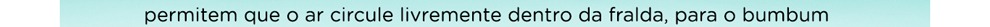 A nova Pampers conta com Canais de Ar que permitem que o ar circule livremente dentro da fralda. Assim o bumbum fica menos abafado e a pele mais arejada e sequinha durante todo o uso! Diga adeus a assaduras e desconforto do bebê!