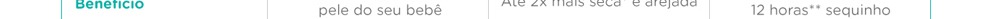 Ela também conta com camada ultra absorvente que absorve rapidamente a umidade e gel mágico que distribui o xixi uniformemente, evitando que a fralda fique pendurada.