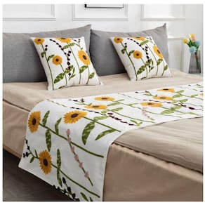 Descrição do produto: 3 unidades por compra, compreendendo: 1 peça de pés de cama decorativos com detalhes bordados medidos 65x200 cmsCor principal: amarelo2 almofadas decorativas bordadas medidas 45x45 cmsCor principal: amarelo Detalhes: girassol