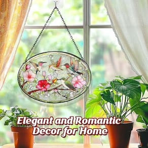 Informações do produto: Quantidade: 1 Material: Vitral Tamanho: 17 cm x 23,9 cm Estilo: beija-flor - Obra de arte impressionante: este vitral pendurado é lindamente representado com beija-flor e outros motivos para fazer você se sentir como se estivesse na natureza, seja colocado em seu quarto, sala de estar, jardim, pátio ou qualquer outro lugar, ele se tornará uma paisagem brilhante. - Decoração atraente: o ornamento de vitral tem transmissão de luz, fazendo com que você possa ver as delicadas linhas de vidro à luz do sol e apresentando um efeito brilhante. É uma ótima peça decorativa que pode facilmente chamar a atenção de alguém. - Presente de Natal perfeito: o enfeite para janelas é o presente ideal para entusiastas de beija-flor no Natal. O presente atencioso e sentimental pode trazer felicidade ao seu ente querido. - Qualidade confiável: Feito de vitral durável de alta qualidade, não é fácil de quebrar, os presentes de beija-flor são feitos com atenção aos detalhes, garantindo que as cores permaneçam ricas e vivas por muitos anos. - Fácil de exibir: nosso vitral mede 24 cm de comprimento por 17 cm de largura e vem com uma corrente de metal conveniente que permite que seja pendurado diretamente em janelas, varandas, paredes e em qualquer lugar que você queira exibi-lo, criando uma atmosfera romântica e elegante em sua casa.