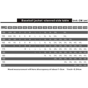 Material: 80% algodão, 20% poliéster Peso: 400 g Embalagem: 1 jaqueta de beisebol ? O visual universitário esportivo e extremamente casual ainda está na moda ? Esta jaqueta é a escolha certa para todos ? Esta é a tabela de tamanhos asiática. Meça cuidadosamente o tamanho antes de fazer o pedido. ? É perfeito para qualquer ocasião casual na estação fria de outono e inverno. Também é ótimo para uso diário, exercícios, caminhadas, exercícios, exercícios, viagens, casa, escritório, férias, Natal, esportes, qualquer outra atividade ao ar livre ou uso casual. Presentes perfeitos para seu namorado, filho, marido e você mesmo. ? Nosso serviço: Estamos comprometidos em criar o melhor serviço de produto para cada cliente. Se este produto não atender às suas expectativas, sinta-se à vontade para entrar em contato conosco, faremos o melhor para lidar com ele até que você fique satisfeito.