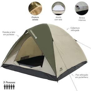 Equipada com tela mosquiteiro, a barraca impede a entrada de insetos e melhora a circulação de ar, mantendo o interior fresco e agradável. Seu piso reforçado em PE e o teto em poliéster com coluna dágua de 1.000 mm proporcionam proteção contra umidade e chuvas leves, enquanto a estrutura com varetas em fibra de vidro entrega maior resistência e estabilidade.