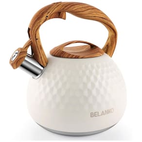Material de qualidade alimentar e design A chaleira BELANKO usa materiais de qualidade alimentar profissional e artesanato em aço inoxidável 18, 8 para garantir que é resistente à ferrugem e corrosão e aquece rapidamente. Todas as superfícies expostas à água e partículas de alimentos são certificadas como de qualidade alimentar e fáceis de limpar. Além disso, projetamos uma nova aparência de diamante, que torna seu bule de chá mais exclusivo. Som de assobio alto O assobio automático e alto chama sua atenção mesmo em um ambiente barulhento. Quando você se concentra em suas tarefas domésticas, filmes, música ou qualquer outra coisa, o bule irá lembrá lo com um apito após ferver a água. Para evitar que se esqueça de desligar e secar a água. Dica basta encher 80 da capacidade para que a chaleira de água possa apitar quando a água estiver fervendo. Esta chaleira de aço inoxidável é ideal para servir em uma família ou festa. A capacidade de 2,7 litros permite atingir uma capacidade de cerca de 12 xícaras após uma única fervura, eliminando a necessidade de ferver água repetidamente com frequência e economizando seu tempo. Alça anti calor com botão de toque simples A alça isolada revestida de silicone permite que você levante o bule diretamente sem risco de queimaduras. A forma ergonômica e a alça de design aumentam o conforto de despejar e encher. O botão de fácil utilização permite que você abra ou feche facilmente o bico sem se preocupar em se queimar com o vapor. Aplicar a vários fogões Aplicável para fogão de indução, forno elétrico, fogão a gás e gás natural. Use a chaleira em fogo baixo ou médio, ela aquece muito rápido e economiza energia