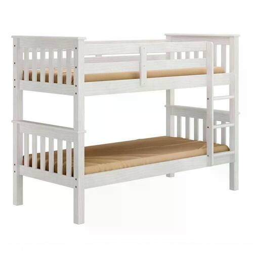 Beliche 100% Madeira Maciça 730b Branco Piratini Branco Beliche, com design arrojado e moderno, ideal para quem busca proporcionar otimização ao ambiente do seu quarto. Estrutura em madeira maciça de eucalipto, escada fixa em madeira pinus, provenientes de reflorestamento para melhor durabilidade e resistência à peça, pés da cama contém 6,3 cm de espessura, o produto conta com uma pintura UV. Ideal para colchões de 188x88 cm. Este móvel chegará em sua casa separado em 03 volumes. Dimensões Altura 156 cm Largura 205,5 cm Profundidade 100 cm Altura entre camas 67 cm