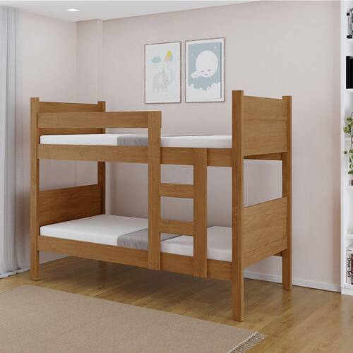 Beliche 100% Mdf Fortaleza - Duas Camas Solteiro Compacta e Moderna Amêndoa - Beliche Solteiro MDF