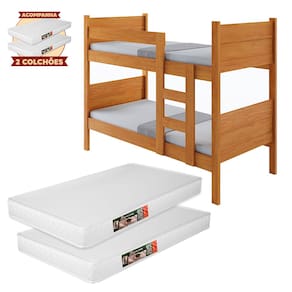 Beliche 100% Mdf Fortaleza - Duas Camas Solteiro Compacta e Moderna Nature com 2 Colchões - Marrom