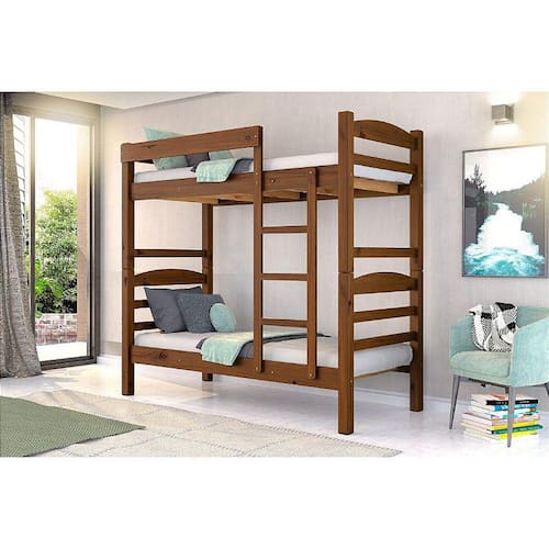 Produto desenvolvido para quartos com pouco espaço, casas e apartamentos, sem perder o estilo. Esta Beliche é produzida em madeira Pínus maciça e conta com acabamento em cores modernas e atuais, além de ser super resistente e alta durabilidade, suportando 150Kg por cama.