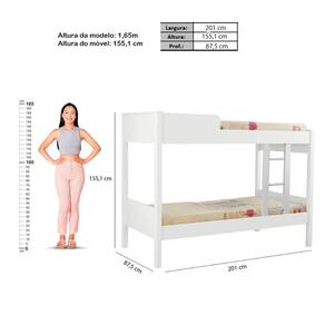 Beliche Cama Solteiro Ditália Com Colchão CM-21 Branco