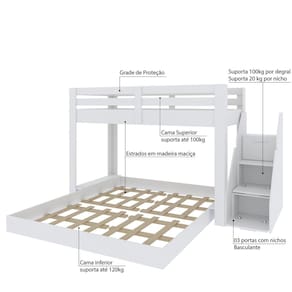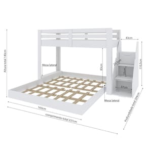 A Beliche Casal Adulto Montessoriano é uma ótima opção para otimizar o espaço em quartos menores, proporcionando mais praticidade ao ambiente. Dispõe de uma cama casal no método montessoriano, uma cama solteiro na parte superior, com grades de proteção laterais, e uma escada lateral, que pode ser montada tanto do lado direito quanto esquerdo, sendo os degraus nichos organizadores com portas basculantes. Produto resistente, moderno e sofisticado, garanta já a sua! Produto Montado: Sim Acabamento da Porta: Perfect Wood Acabamento dos Pés: BP Acompanha Cama Auxiliar: Não Acompanha Colchão: Não Altura do Estrado até o Chão: 20 cm Altura do Estrado Superior até o Chão: 96.0000 Altura dos Pés: 1,5 cm Altura Máxima dos Pés: 1.5000 Ambiente Principal: Quarto codigo_ean: 7909903617151 Complexidade da Montagem: Alta: deve ser montado por um montador especializado Comprimento: 237 cm Cor: Branco Perfect Wood Cor do Produto: Branco Perfect Wood Cor Flex: Não Escala de Brilho: Semi-Brilho Escala de Brilho da Porta: Semi-Brilho Informações Complementares: - Fazer uma verificação mensal e realizar o reaperto dos parafusos do produto, caso necessário. - Proibido pular sobre as camas. - O produto destina-se ao uso de uma pessoa por cama sempre. O produto jamais deverá ser utilizado por mais de uma pessoa por cama Itens Inclusos: 1 Beliche Solteiro/Casal + Kit de ferragens + manual de montagem Manual de Montagem e Instalação: https://product-hub-prd.madeiramadeira.com.br/898344/documents/f1033d5a-0997-4a17-8654-33be5bab73cdheMontessorianaCasalBranca.pdf Marca: Casatema Material da Porta: MDP Material do Estrado: Madeira Multilaminada Material do Puxador da Porta: MDF Material dos Pés: Plástico Material Principal: MDP Montagem Flex: Não Necessita Montagem: Sim Número de Camas: 02 Origem do Produto: Nacional Permite a Utilização de Cama Auxiliar: Não Peso: 105,5 kg Peso Suportado por cada cama: 100.0000 Possui Baú: Não Possui Escrivaninha: Não Possui Espelhos: Não Possui Gavetas: Não Possui Grade: Sim Possui Nichos: Não Possui Pés: 20 Possui Portas: Sim Possui Prateleiras: Não Possui Rodízio: Não Quantidade de Portas: 03 Recomendações de Uso, Manutenção e Limpeza: Limpar com pano umedecido, sem adição de produtos químicos. Sapatas Niveladoras: Não Sistema de Montagem: Profissional Qualificado Tamanho da Cama: Solteiro Tamanho do Colchão Indicado (L x C): 88cm x 188cm / 158cm x 198cm Tipo de Colchão: Solteiro Tipo de Dobradiça/Corrediça da Porta: Metálica Tipo de Estrado: Fixo Tipo de Porta: Misto (Bater e Basculante) Tipo de Puxador da Porta: Externo Trava de Segurança: Não