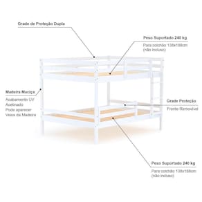 Material Principal: Madeira Maciça | Cor Predominante: Branco | Necessita Montagem: Sim | Acompanha Colchão: Não | Tipo de Cama: Beliche | Cor: Branco