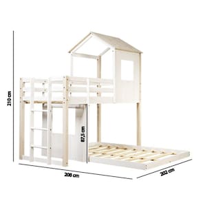 A Casatema é uma loja especializada em Móveis infantis no conceito lúdico, onde a diversão e segurança fazem parte do design de cada peça. Todo o processo de construção de nossos móveis é baseado nas experiências de nossas crianças, o que torna nossos produtos inovadores no mercado! O Beliche Casal Montessoriano Family foi desenvolvido exclusivamente pela Casatema. Essa peça pode acomodar até três crianças, um casal com um filho, mãe com dois filhos e uma mãe solo com dois filhos. Um projeto lindo, perfeito para trazer magia ao quarto. Estrutura toda em madeira maciça clear, ou seja, madeira selecionada de alta qualidade, sem nós. Com acabamento cepilhado, dando aquele toque macio e acabamento de qualidade no produto. Acompanha Cama Auxiliar: Não Acompanha Colchão: Não Altura do Estrado Superior até o Chão: 87.5 Ambiente Principal: Quarto Infantil Complexidade da Montagem: Alta: deve ser montado por um montador especializado Cor: Marroml/Branco Cor do Produto: Marroml/Branco Escala de Brilho: Semi-Fosco Itens Inclusos: 1 Beliche, Kit Ferragens e Manual de Montagem Linha ou Coleção: Family Manual de Montagem e Instalação: https://cdn2.madeiramadeira.com.br/prd/serraltense/1242978-7908308728363.pdf Material da Escada: Madeira Material do Estrado: Madeira Material Principal: Madeira Maciça Necessita Montagem: Sim Número de Camas: 02 Origem do Produto: Nacional Permite a Utilização de Cama Auxiliar: Não Peso: 6710000000000000 Peso Suportado por cada cama: 80 Possui Gavetas: Não Possui Pés: Não Possui Portas: Não Possui Prateleiras: Não Recomendações de Uso, Manutenção e Limpeza: Na limpeza não utilizar produtos químicos e abrasivos, usar apenas um pano seco, para garantir a maior durabilidade do móvel. Sistema de Montagem: Parafuso e Cavilha Suporta Até (kg): 80 Tamanho do Colchão Indicado (L x C): 88cm x 188cm / 138cm x 188 cm Tipo de Colchão: Solteiro Tipo de Estrado: Fixo Tipo de Madeira Maciça: Pinus Trava de Segurança: Não
