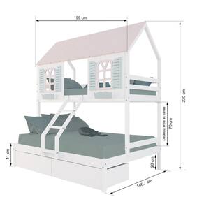 Diferenciais: Escada com Leve Curvatura, Casinha e Telhado com fechamento em MDF, Janela e Cachepô, 02 Gavetas.