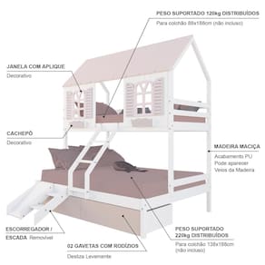 Diferenciais: Escada com Leve Curvatura, Casinha e Telhado com fechamento em MDF, Janela e Cachepô, 02 Gavetas, Kit Escada/Escorregador.
