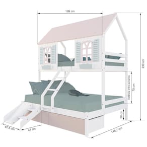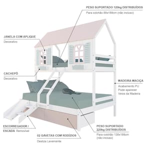 Diferenciais: Escada com Leve Curvatura, Casinha e Telhado com fechamento em MDF, Janela e Cachepô, 02 Gavetas, Kit Escada/Escorregador.