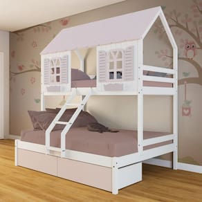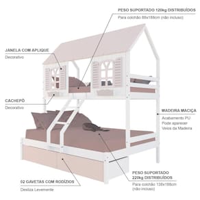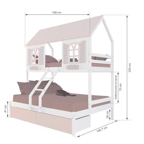 Diferenciais: Escada com Leve Curvatura, Casinha e Telhado com fechamento em MDF, Janela e Cachepô, 02 Gavetas.