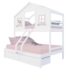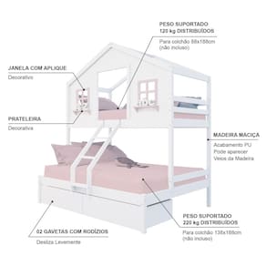 Diferenciais: Escada com Leve Curvatura, Casinha com fechamento em MDF, Janela e Prateleira Decorativa, 02 Gavetas com Rodízios.