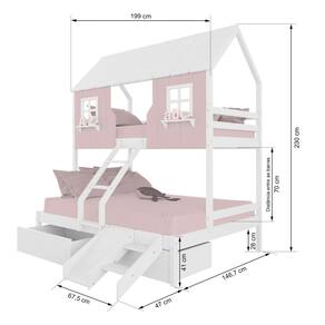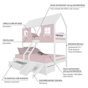 Diferenciais: Escada com Leve Curvatura, Casinha e Telhado com fechamento em MDF, Janela e Prateleira Decorativa, 02 Gavetas, Kit escada/ Escorregador.