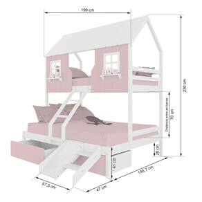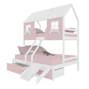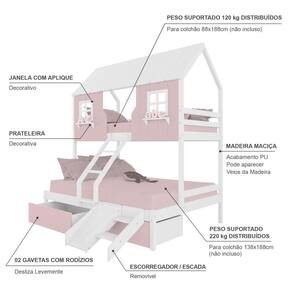 Diferenciais: Escada com Leve Curvatura, Casinha e Telhado com fechamento em MDF, Janela e Prateleira Decorativa, 02 Gavetas, Kit escada/ Escorregador.