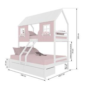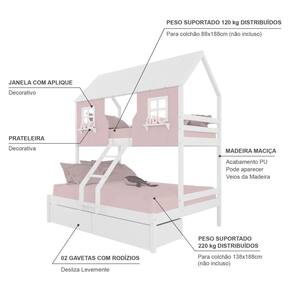 Diferenciais: Escada com Leve Curvatura, Casinha e Telhado com fechamento em MDF, Janela e Prateleira Decorativa, 02 Gavetas.