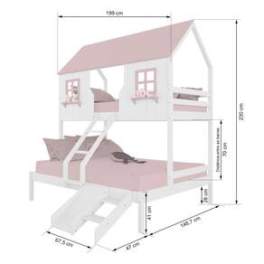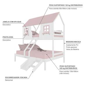 Diferenciais: Escada com Leve Curvatura, Casinha e Telhado com fechamento em MDF, Janela e Prateleira Decorativa, Kit Escada/ Escorregador.