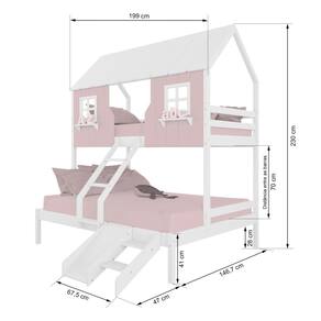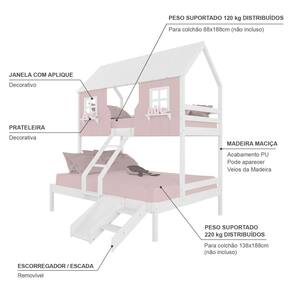 Diferenciais: Escada com Leve Curvatura, Casinha e Telhado com fechamento em MDF, Janela e Prateleira Decorativa, Kit Escada/ Escorregador.
