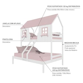 Diferenciais: Escada com Leve Curvatura, Casinha e Telhado com fechamento em MDF, Janela e Prateleira Decorativa.