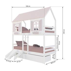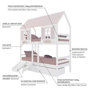Diferenciais: Casinha e Telhado com fechamento em MDF, Janela e Cachepô, 02 Gavetas com Rodízios, kit Escada/Escorregador.