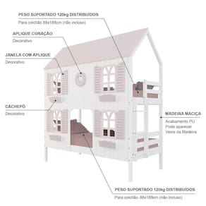 Material Principal: Madeira | Cor: Branco | Rosa | Necessita Montagem: Sim | Acompanha Colchão: Não | Tipo de Cama: Beliche Solteiro Casinha