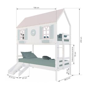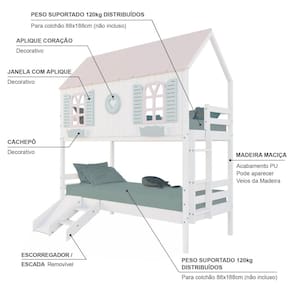 Diferenciais: Casinha e Telhado com fechamento em MDF, Fechamento Coração, Janela e Cachepô, Kit Escada/Escorregador.