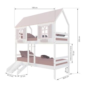 Diferenciais: Casinha e Telhado com fechamento em MDF, Janela e Cachepô, Kit escada/escorregador