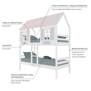 Material Principal: Madeira | Cor: Branco | Rosa | Verde | Necessita Montagem: Sim | Acompanha Colchão: Não | Tipo de Cama: Beliche Solteiro