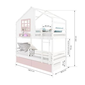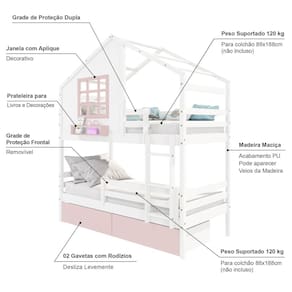 Diferenciais: Escada Fixa, 02 Gavetas, Grade de Proteção Removivel, Casinha com fechamento em MDF, Janela e Prateleira para Livros e Decoração, Montagem Reversível (Lado Direito ou Lado Esquerdo)