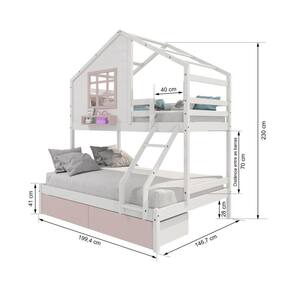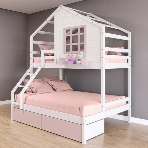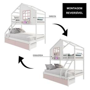 Material Principal: Madeira Maciça | Cor: Branco/ Rosa | Necessita Montagem: Sim | Acompanha Colchão: Não | Tipo de Cama: Beliche Casal/ Solteiro