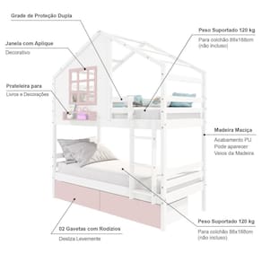 Material Principal: Madeira Maciça | Cor: Branco/ Rosa | Necessita Montagem: Sim | Acompanha Colchão: Não | Tipo de Cama: Beliche Solteiro